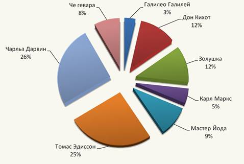 И вот каким получился этот коллективный портрет: глаза - Дарвина, нос - Эдиссона, рот как у Золушки, брюнет как Че Гевара, шлем – Дон Кихота, уши – Мастера Йоды, борода Карла Маркса и плащ Галилео.