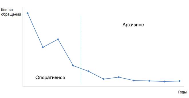 Пример с документом, описывающим процедуру работы в компании. Мы видим, что в период появления документа большое количество сотрудников массово его просматривали. С течением времени поток обращений снизился и зафиксировался на уровне только новичков (т.к. базовым технологиям текущие сотрудники уже привыкли следовать). На основе такой статистики система сама может сделать вывод о необходимости переноса документа в архивное хранилище, а также включение его в список обязательных документов для всех новичков.