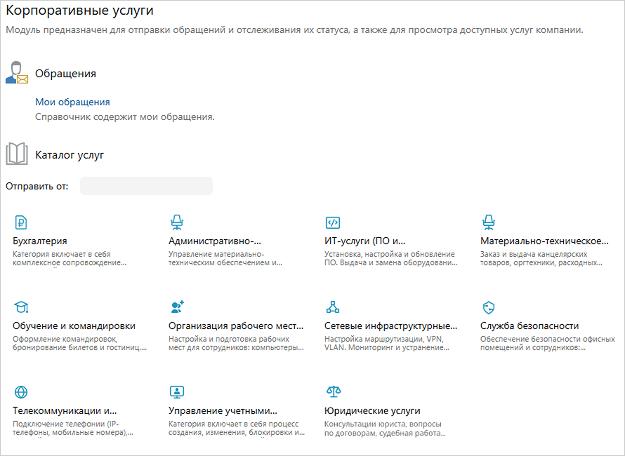 Уверен, что все процессы вашего юридического отдела уже выстроены. А сотрудники других подразделений в курсе? Повысьте прозрачность для коллег. Разместите услуги на портале самообслуживания и расскажите, как отправить обращение.