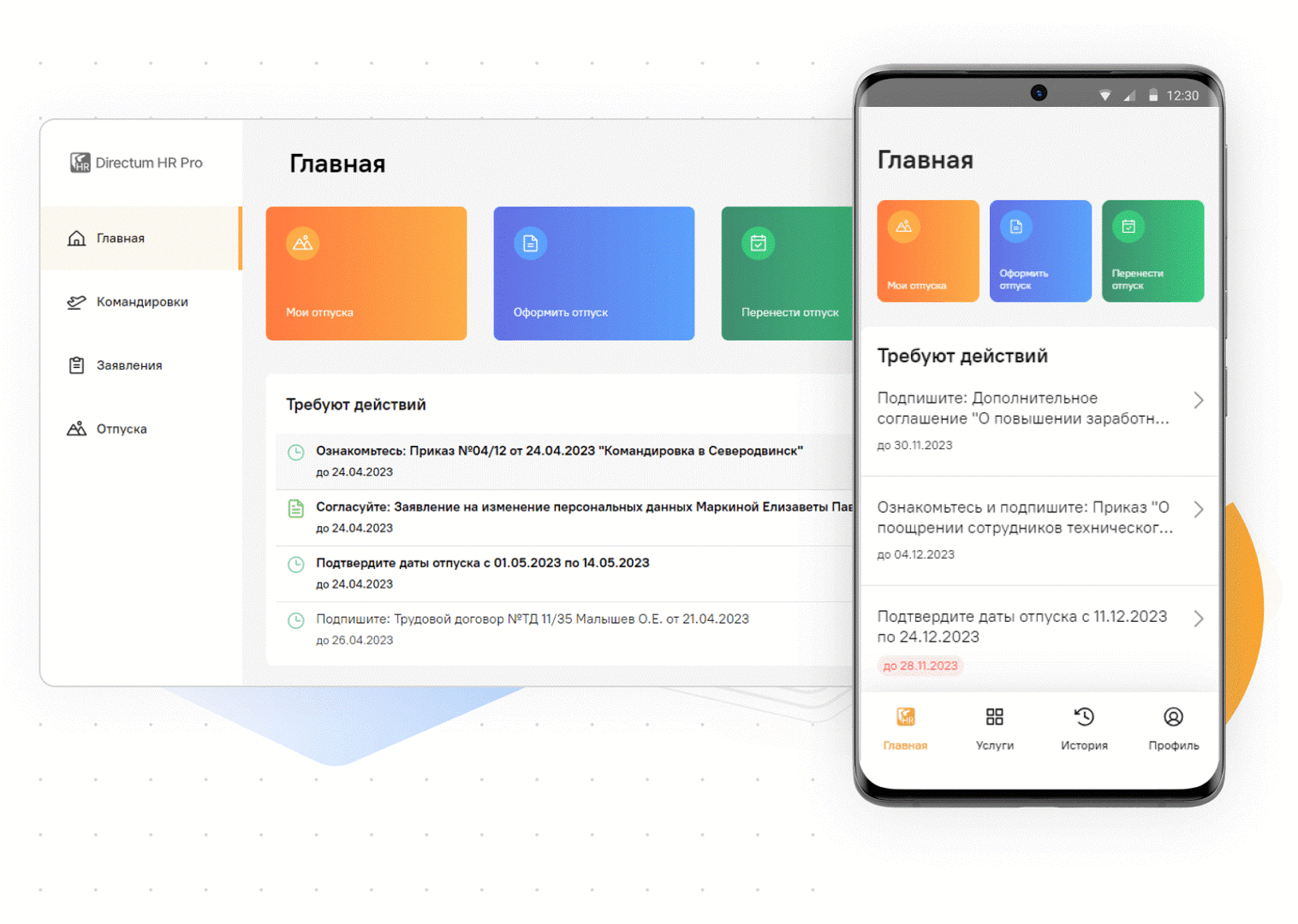Заключить трудовой договор можно удаленно через единый личный кабинет Directum HR Pro — системы управления кадровыми процессами и документами. Подписание цифровое и легитимное, идентификация происходит через Госуслуги. Специалистам не нужно ничего распечатывать и подстраивать свой график под всех новичков — оформить документы можно в любое время, не вставая из-за компьютера. Рядовому сотруднику тоже удобно — не нужно переключаться между вкладками, всё находится в одном интерфейсе.