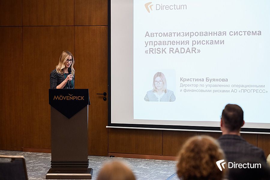 О результатах применения уникальной автоматизированной системы управления рисками (АСУР) RISK RADAR рассказала Кристина Буянова, директор по управлению операционными и финансовыми рисками АО «ПРОГРЕСС». Ведущий производитель детского питания в России разработал собственную АСУР на базе Directum RX. Спикер уточнила, что сейчас в компании под контролем находятся 11 видов рисков из 14 областей законодательного регулирования.